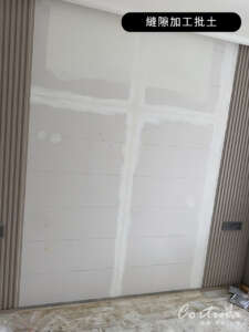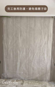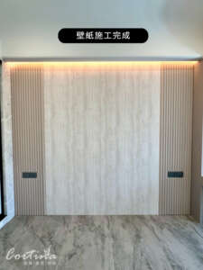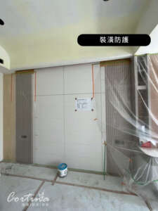 為了讓完成品平整精緻,可堤那壁紙團隊特別進行現場防護與批土作業👷♂️,不馬虎每一個步驟,也不辜負客戶的信任與期待💖
